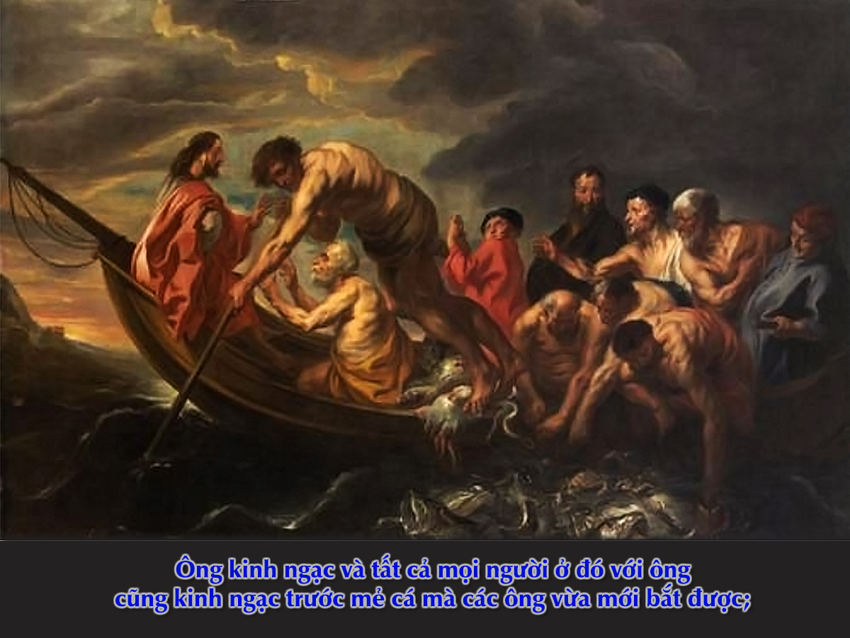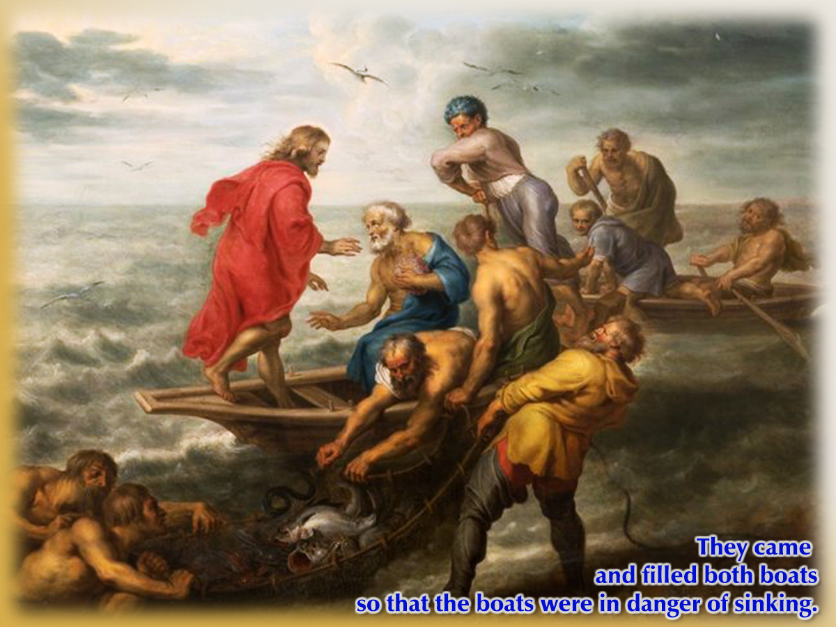 Ông Si-mon đáp: "Thưa Thầy, chúng tôi đã vất vả suốt đêm mà không bắt được gì cả. Nhưng dựa vào lời Thầy, tôi sẽ thả lưới". Họ đã làm như vậy, và bắt được rất nhiều cá, đến nỗi hầu như rách cả lưới.
